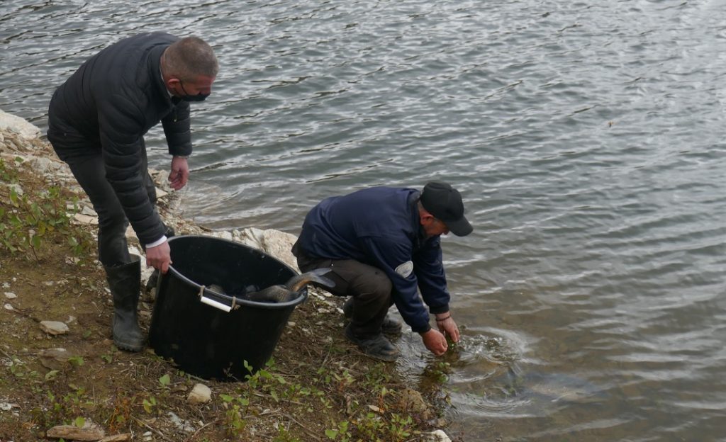 Македонска Каменица, 27.11.2021 – Благодарение на финансиската поддршка што ја обезбедува Рудник САСА, Здружението на риболовци – Спортски клуб „Шаран“ спроведе акција за обнова и дополнување на рибниот фонд во езерото Калиманци.