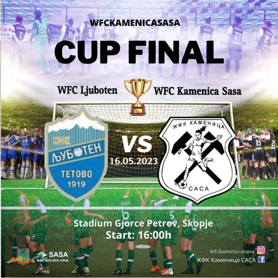 Стадионот “Ѓорче Петров” во Скопје, утре со почеток од 16:00 часот, ќе ги прими екипите на ЖФК Љуботен од Тетово и ЖФК Каменица САСА од Македонска Каменица како финалисти во Купот на Македонија.