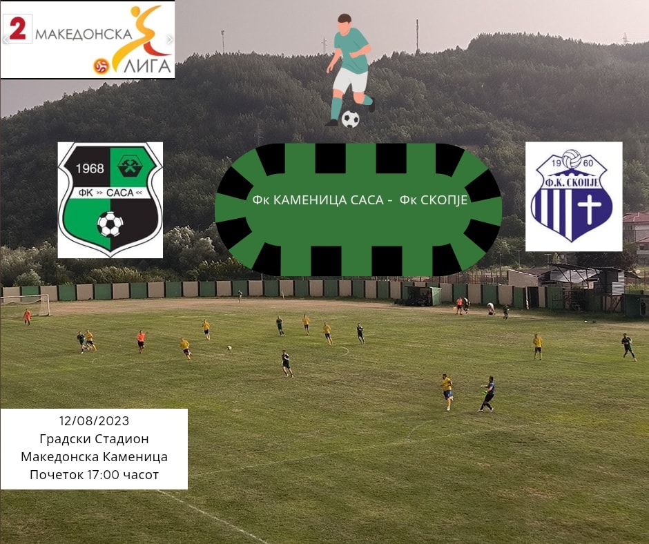 Македонска Каменица, 10. Август 2023 година – Со натпреварот против ФК Скопје екипата на ФК Каменица Саса ја започнува новата натпреварувачка сезона во Втората фудбалска лига на Македонија. Натпреварот се игра во сабота на 12. Август, со почеток од 17:00 часот, на Градскиот стадион во Македонска Каменица.