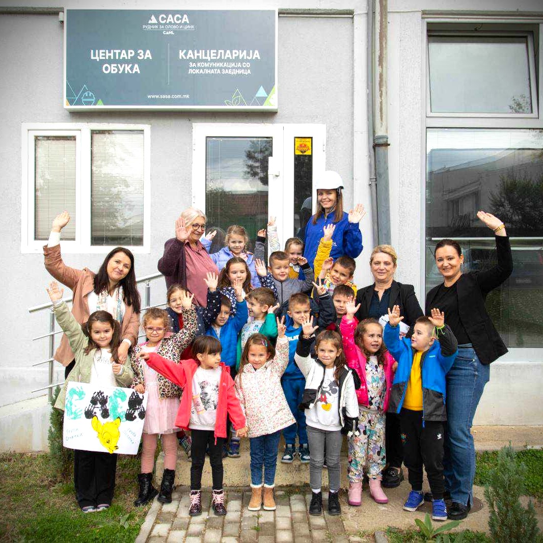 Македонска Каменица, 10. Ноември 2023 година – Повозрасните групи дечиња при детската градинка „Бамби“ ја посетија локалната канцеларија на Рудник САСА во Македонска Каменица. Преку оваа активност, дечињата имаа убава можност непосредно да се запознаат со работата на најголемиот македонски рудник. За начинот на кој се врши подземно ископување на оловната и цинкова руда.