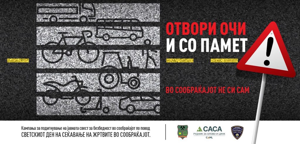 По повод 19. Ноември, прогласен од Обединетите Нации за Светски ден на сеќавање на жртвите од сообраќајни несреќи, рудникот за олово и цинк САСА, во партнерство со Општина Македонска Каменица и Министерството за внатрешни работи, започнува со реализација на Проект за подигнување на јавната свест и зголемување на безбедноста во сообраќајот.