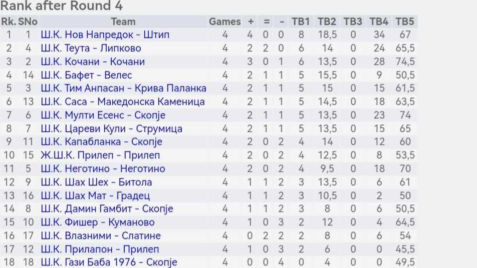 После 4 одиграни кола, екипата на Шаховскиот клуб Каменица САСА од Македонска Каменица има изгледни шанси за пласман во Втората шаховска лига на Македонија.