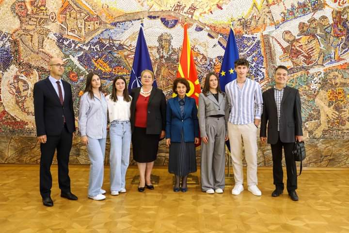 Учениците добитници на меѓународни награди и признанија во текот на 2024 година и нивните ментори, вчера беа примени од претседателката Гордана Сиљановска Давкова.
