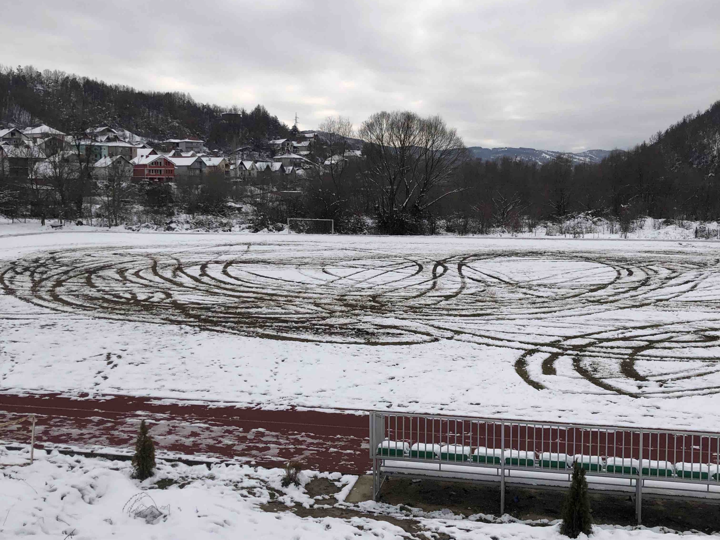 Вандали дрифтаа на снег и го оштетија помошниот фудбалски терен во Македонска Каменица