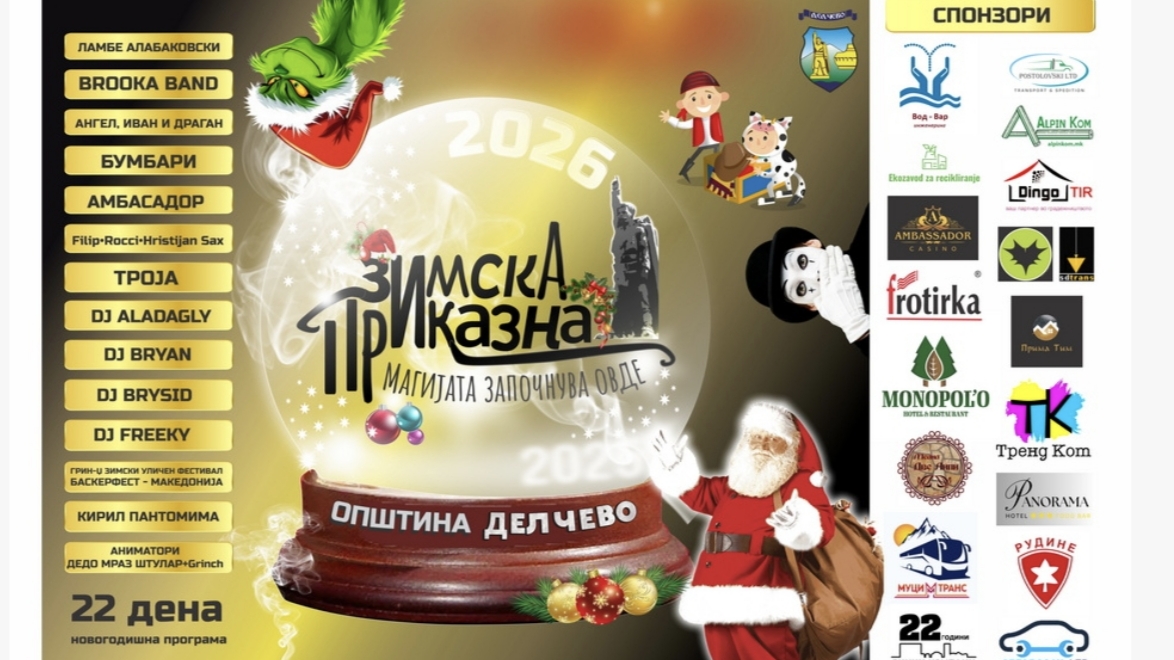 Денеска на прес конференција Градоначалникот на Општина Делчево Иван Гоцевски ја најави овогодинешната новогодишна манифестација “Зимска приказна”: Магијата започнува овде и ги образложи главните карактеристики на програмата.