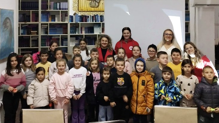 На почетокот, децата преку краток цртан филм се запознаа со улогата и хуманата мисија на Црвениот крст, а потоа следуваше практичен дел исполнет со интерес и ентузијазам.